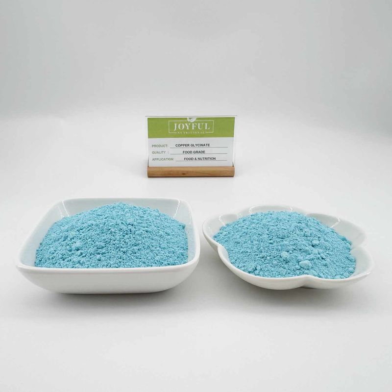 • Το γλυκινάτη χαλκού χρησιμοποιείται ευρέως σε συμπληρώματα διατροφής όπως κάψουλες, δισκία και σκόνες λόγω της υψηλής βιοδιαθεσιμότητάς του και της έλλειψης μεταλλικής γεύσης.Είναι ένα απαραίτητο ορυκτό για όσους θέλουν να διατηρήσουν την ανοσοποιητική λειτουργία, υγεία του δέρματος, και ενεργειακό μεταβολισμό.